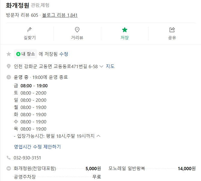 | 소요시간 | 도보 기준 왕복 1시간~1시간 30분 |