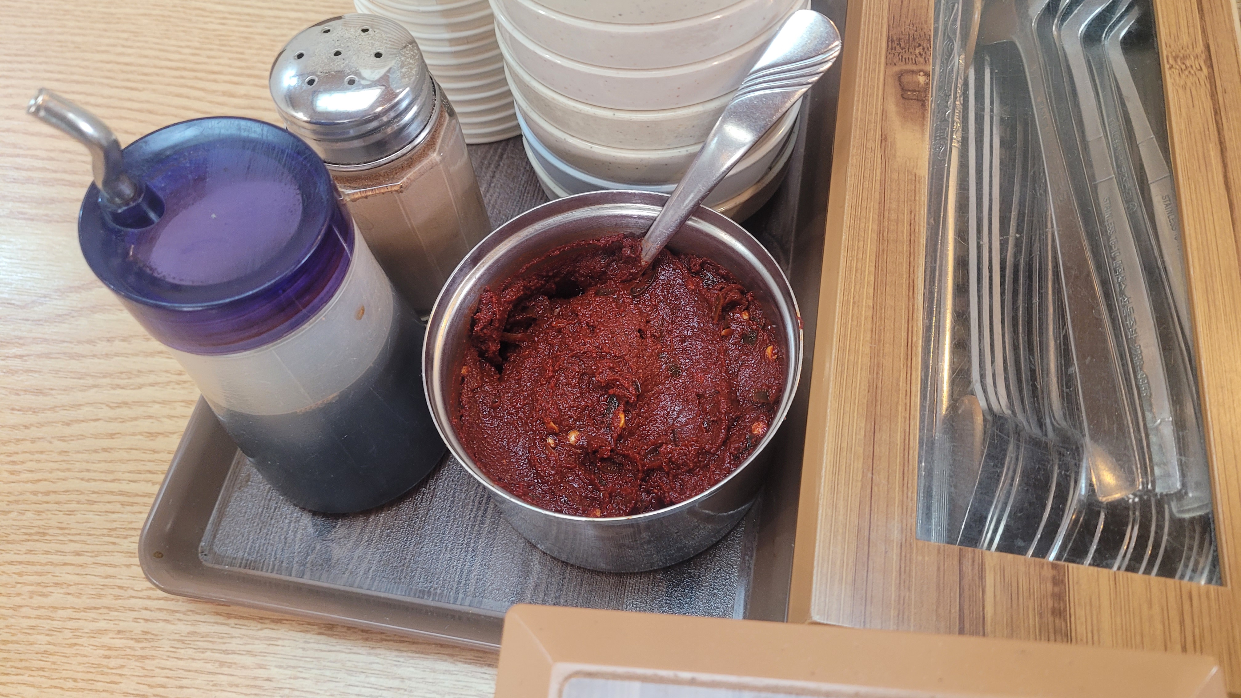함께 나오는 겉절이 김치와 단무지도 빼놓을 수 없습니다. 아삭하고 매콤한 김치가 자칫 심심할 수 있는 국수 맛을 꽉 잡아주어 완벽한 밸런스를 이뤘습니다.