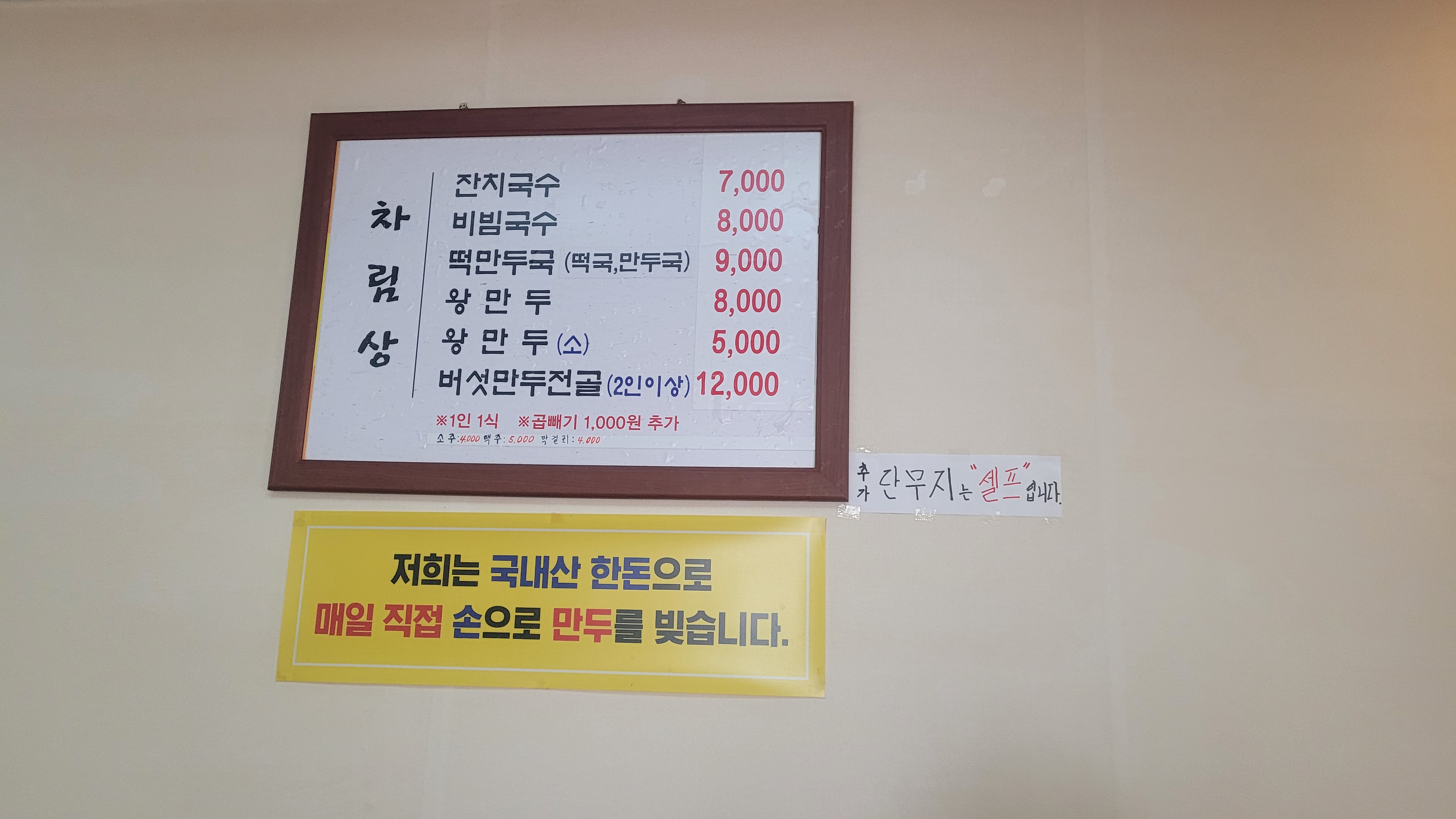 특히 눈길을 끌었던 문구는 **"저희는 국내산 한돈으로 매일 직접 손으로 만두를 빚습니다"**라는 안내였어요. 요즘 많은 식당에서 냉동 만두를 사용하는데, 이곳은 매일 아침 정성으로 만두를 빚는다고 하니 먹기 전부터 기대감이 수직 상승하더라고요.
