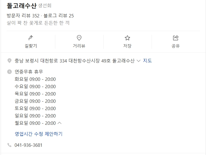 | 주소 | 충남 보령시 대천항로 334 대천항수산시장 49호 |