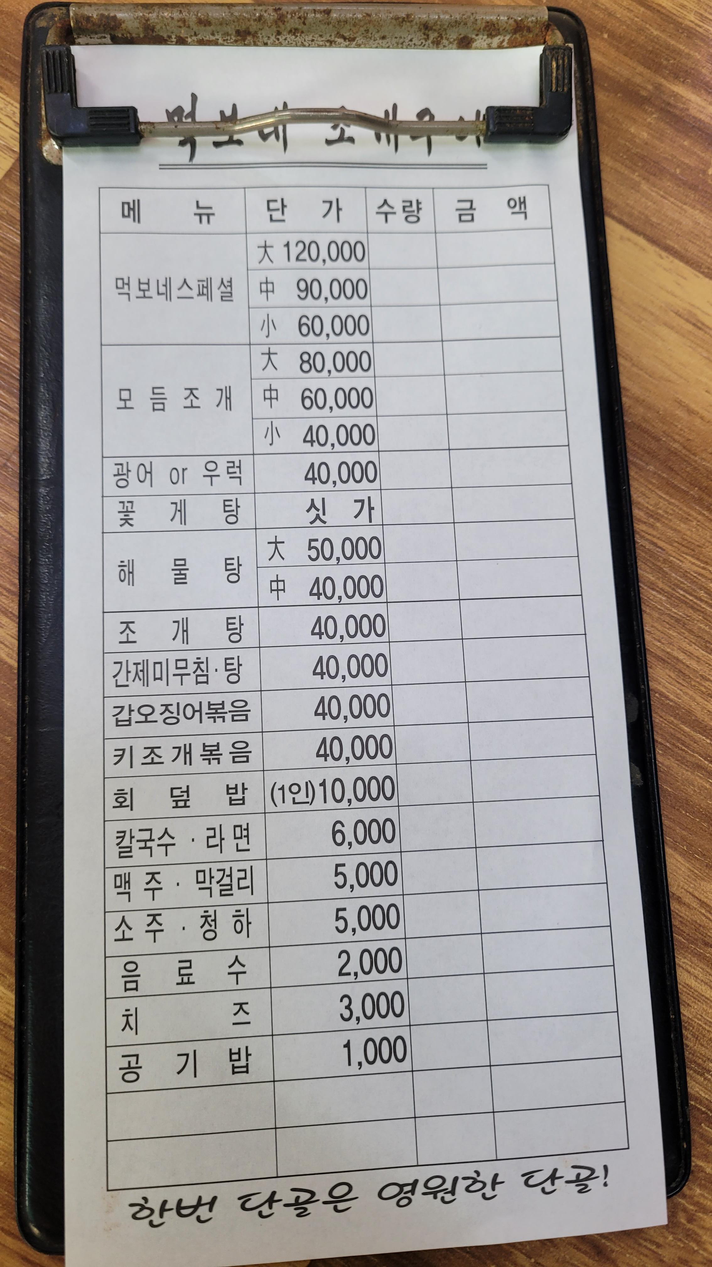 - 가성비 조각: 인근의 '먹보네 스페셜'이나 다른 고가 메뉴에 비해 매우 합리적인 가격임에도 불구하고, 나오는 조개의 선도와 양은 결코 부족함이 없었습니다.
