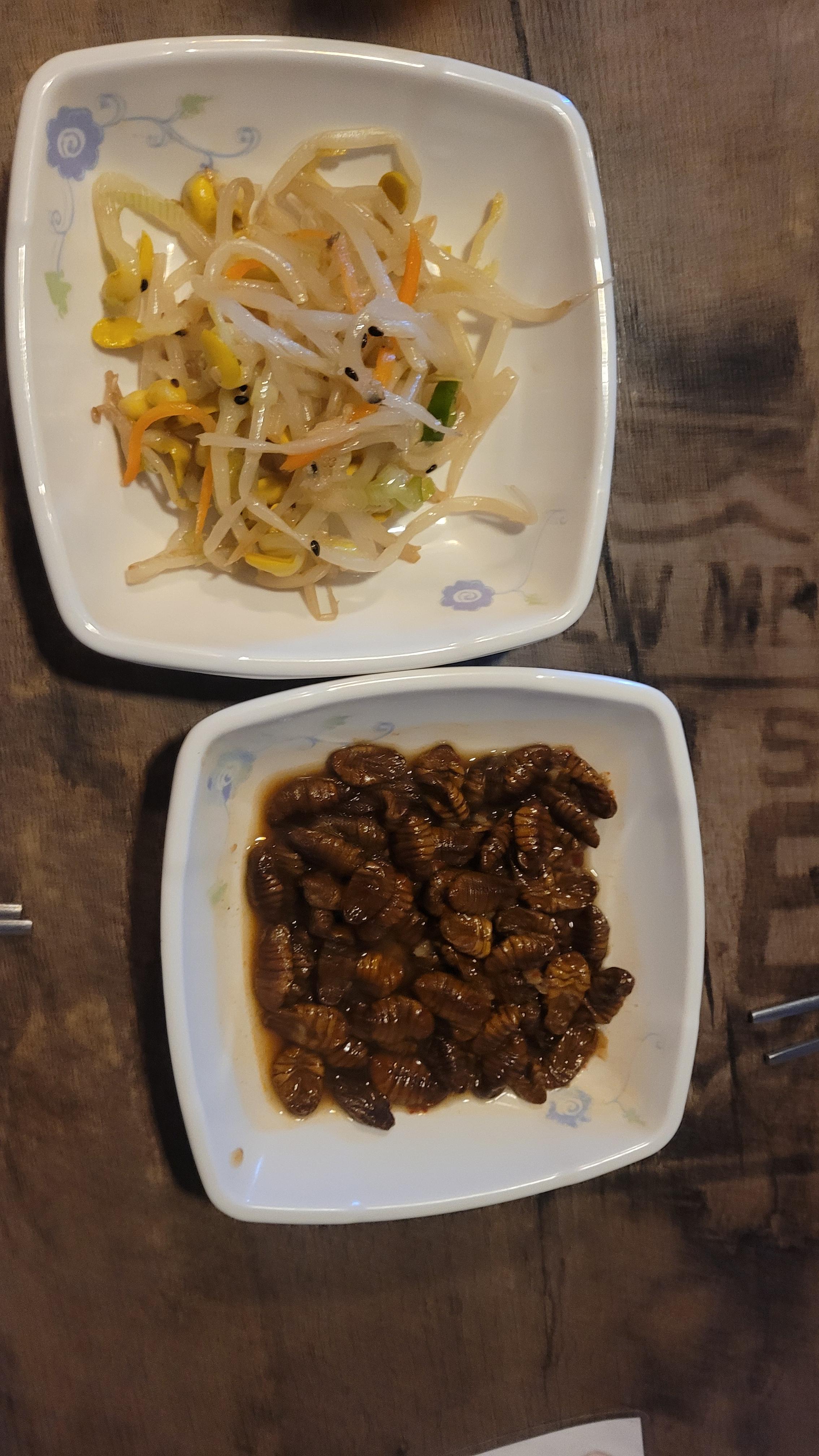 자리에 앉으면 가장 먼저 반겨주는 콩나물무침과 번데기는 등촌주막집의 정체성을 잘 보여줍니다. 짭짤하게 간이 밴 번데기는 메인 안주가 나오기 전 맥주 첫 잔을 비우게 만드는 훌륭한 에피타이저입니다.