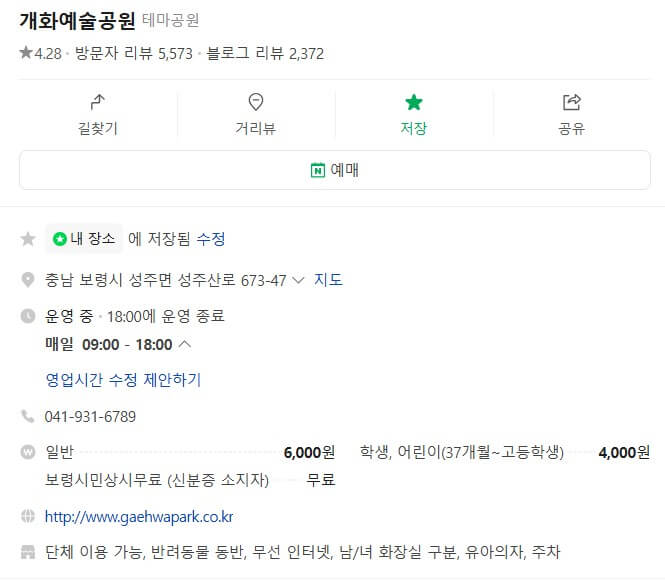 | 보령 시민 | 무료 (신분증 소지 필수) |