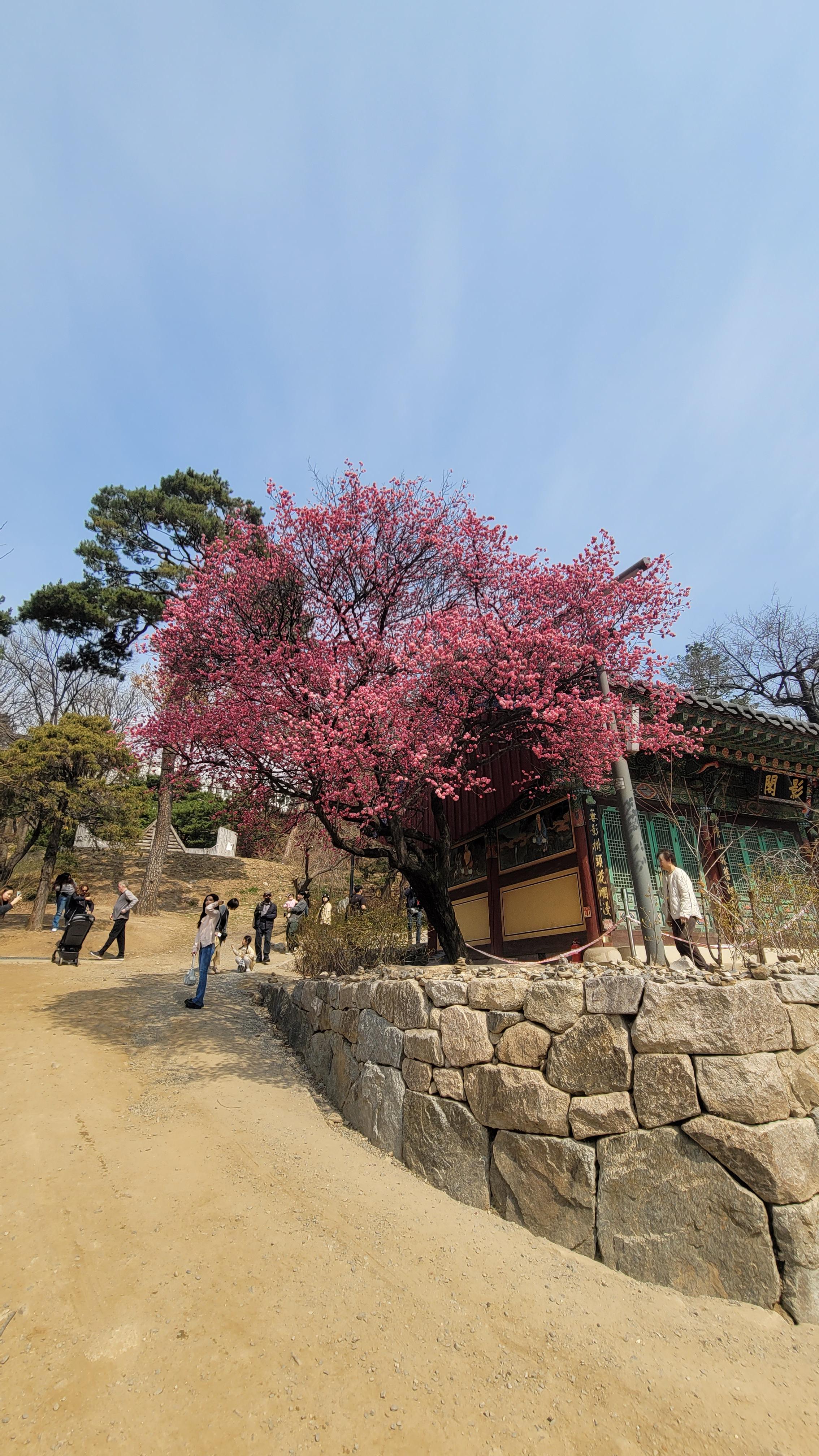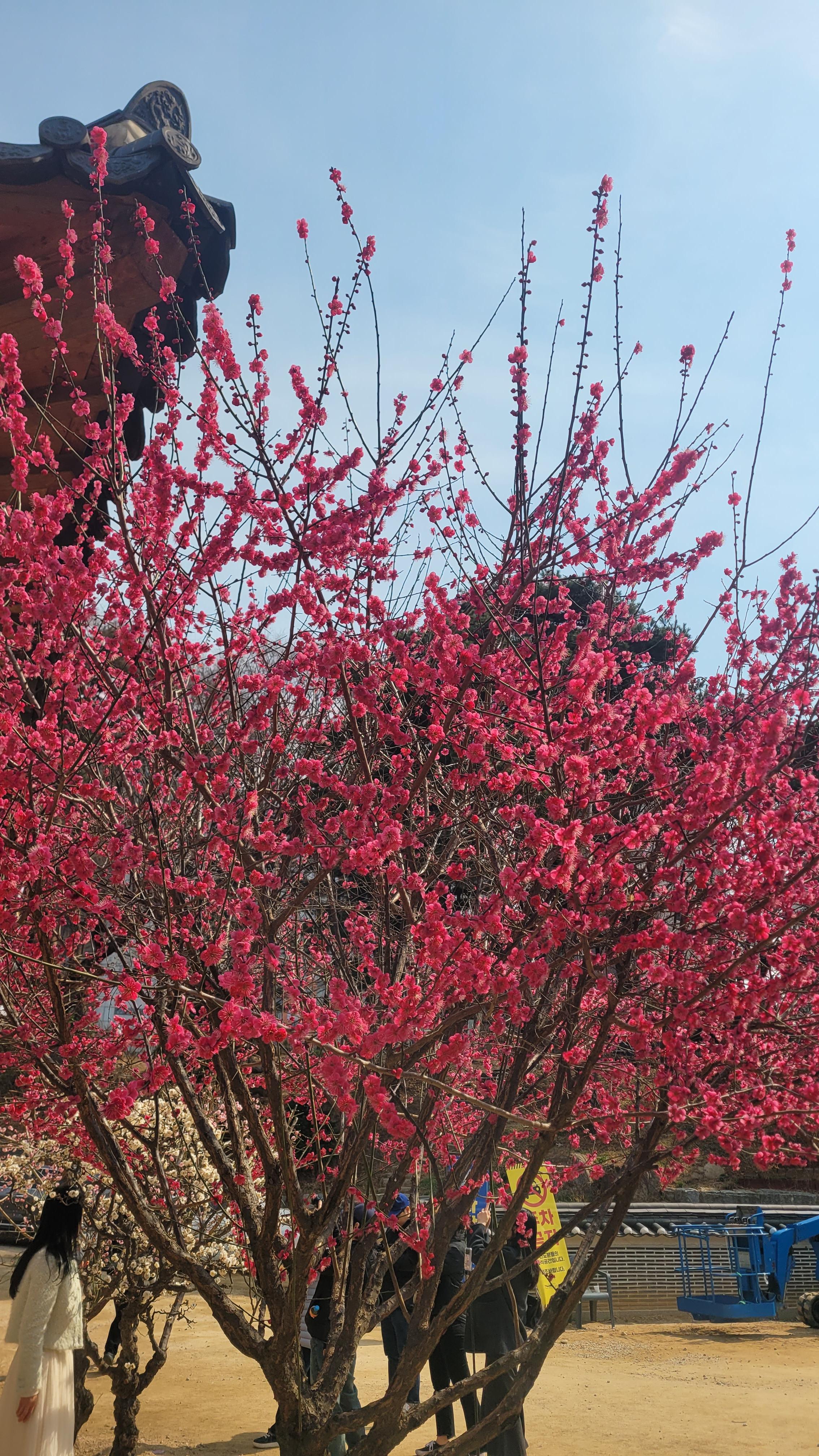 주로 영각 주변에 모여 있는데, 나무의 개수가 적다 보니 꽃이 핀 곳마다 인산인해를 이룹니다. 특히 일요일 오후에는 꽃보다 사람이 더 많다는 느낌을 받을 정도로 붐볐습니다. 홍매화 한 가지 조각만을 목적으로 멀리서 찾아오시기에는 아쉬움이 남을 수 있으니, 방문 전 이 리포트를 통해 기대치를 적절히 조절하시는 것이 좋겠습니다.