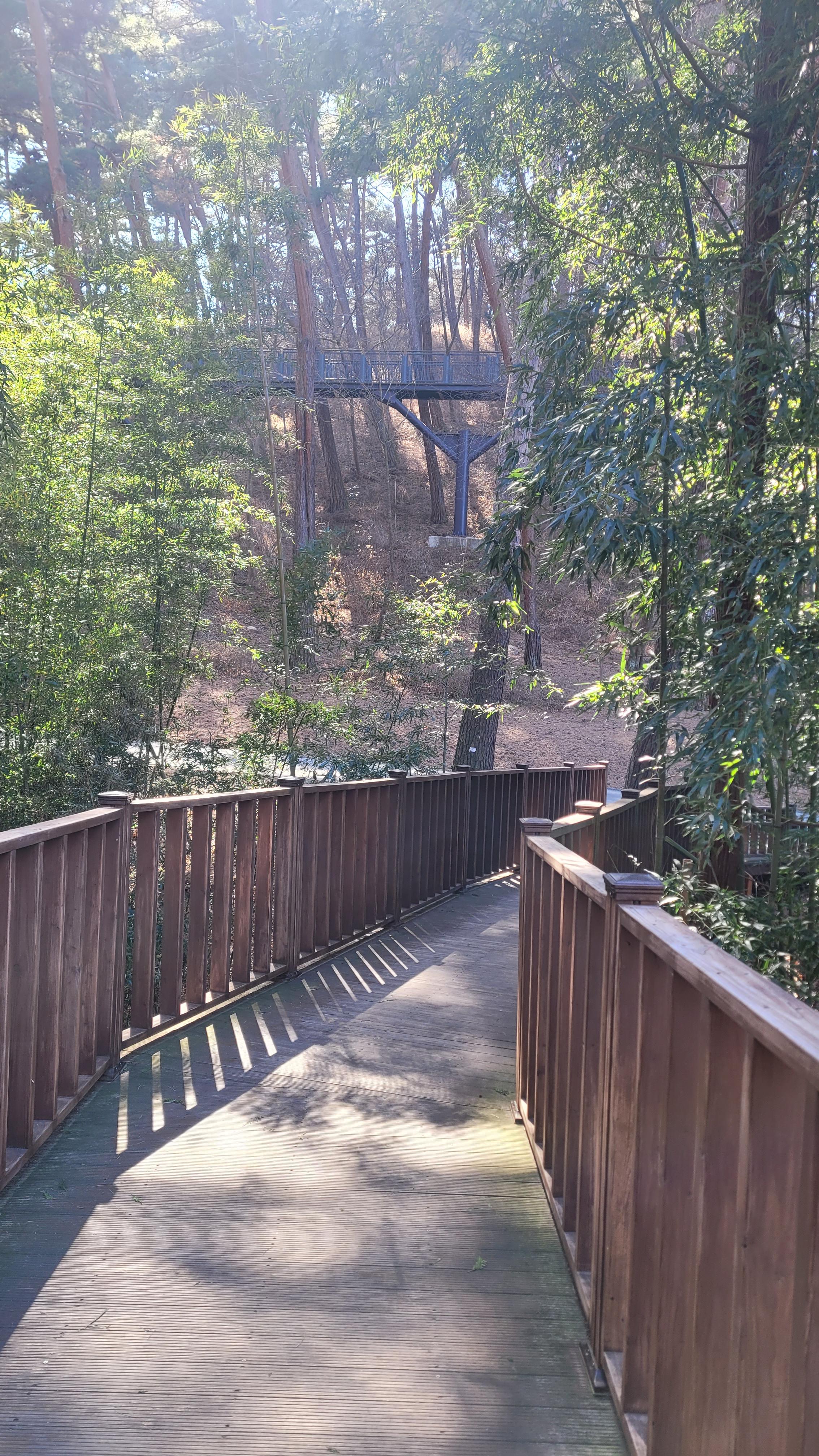 단순히 평평한 길만 계속되는 게 아닙니다. 지형에 따라 데크가 꽤 높게 설치된 구간도 있어, 마치 소나무 꼭대기를 걷는 듯한 스카이워크 같은 기분이 듭니다.