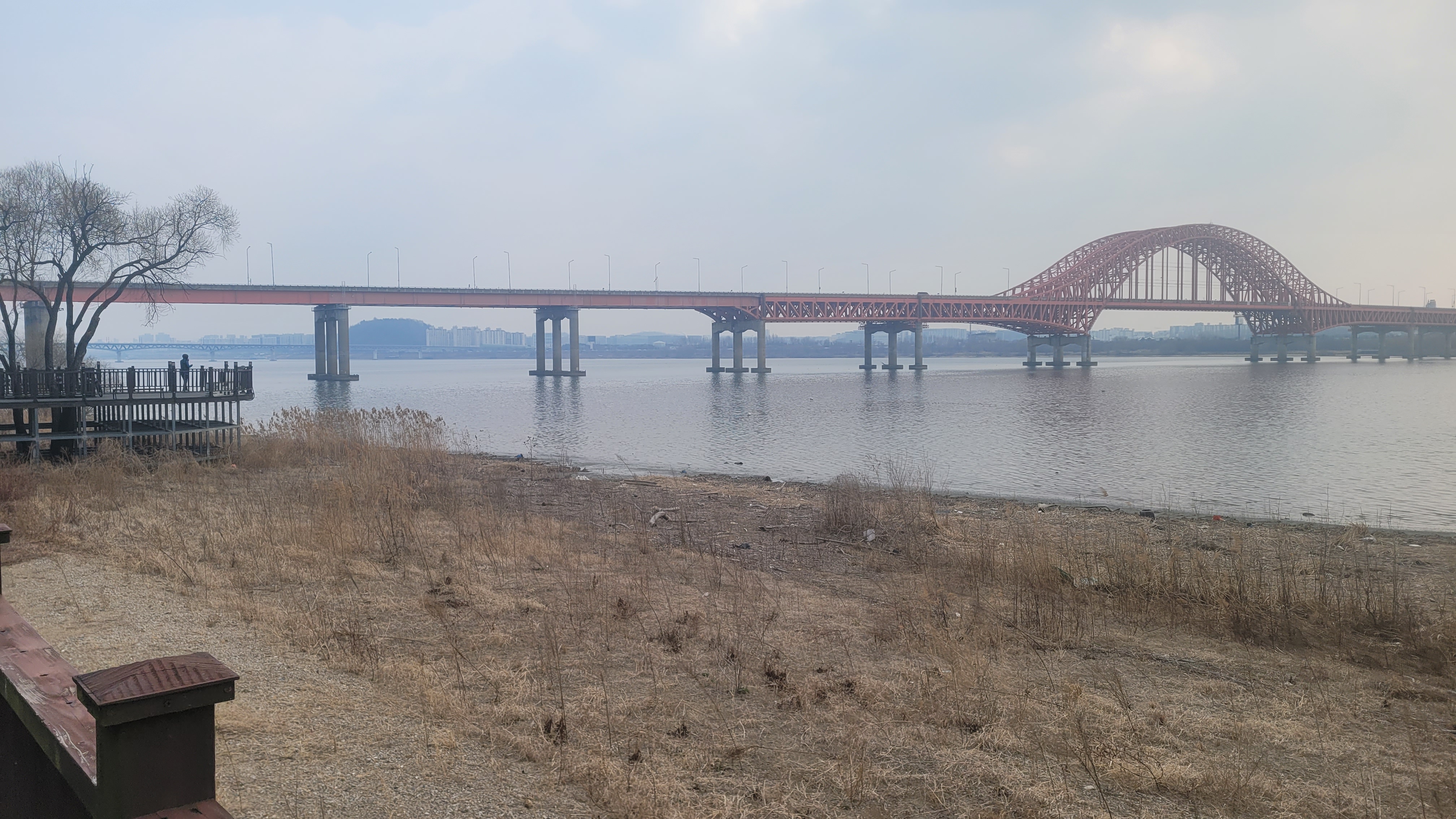 길을 따라 걷다 보면 왼쪽으로 방화대교 전망대가 나타납니다. 이곳은 붉은색 방화대교의 웅장한 아치 구조물을 가장 가까이에서 볼 수 있는 포인트로, 한강의 시원한 바람을 맞으며 사진 한 조각을 남기기에 최적의 장소입니다. 데크 아래로 흐르는 강물 소리를 들으며 걷는 이 길은 산성 정상의 역사적인 분위기와는 또 다른 현대적이고 평화로운 휴식을 선사합니다.